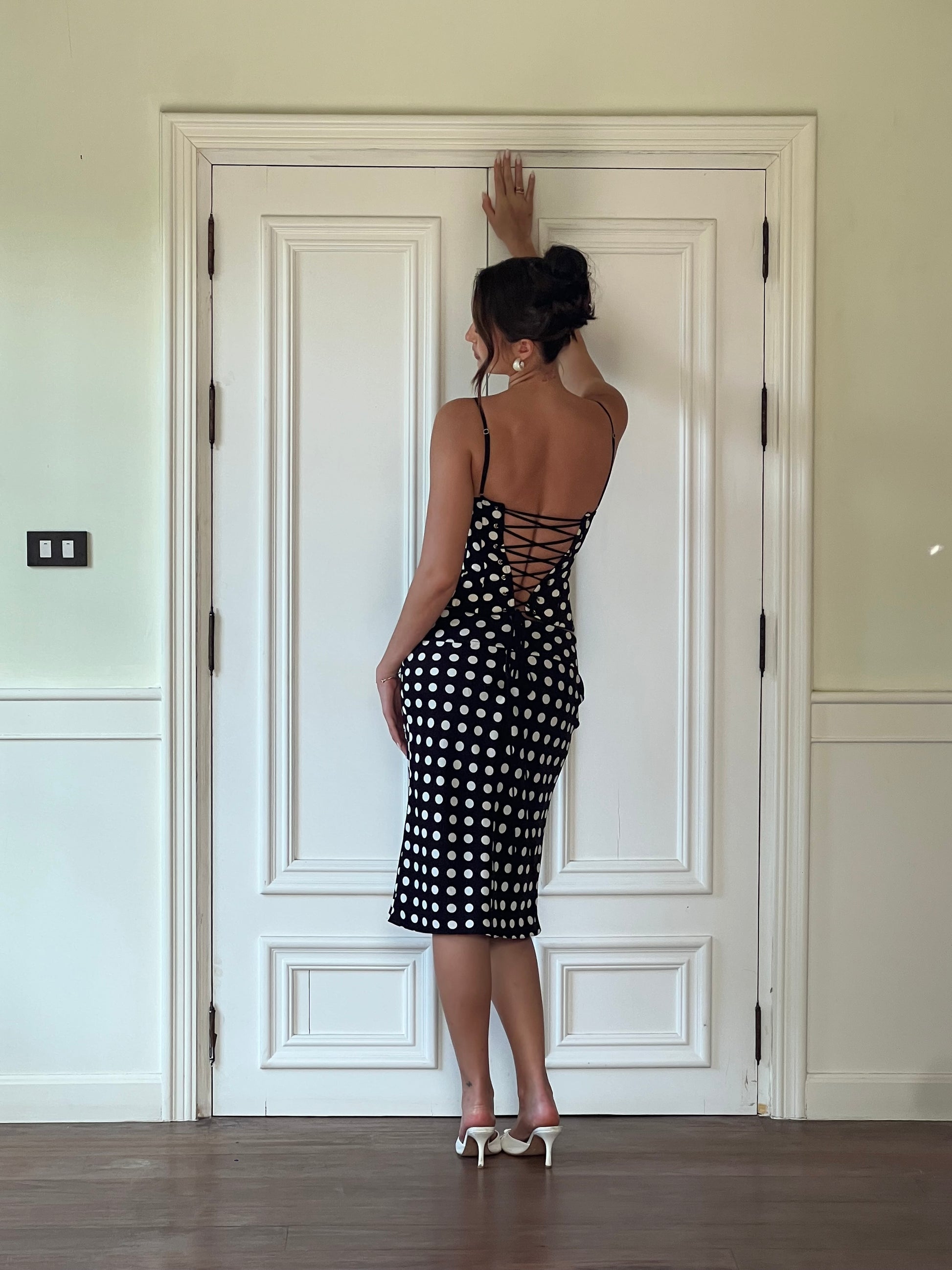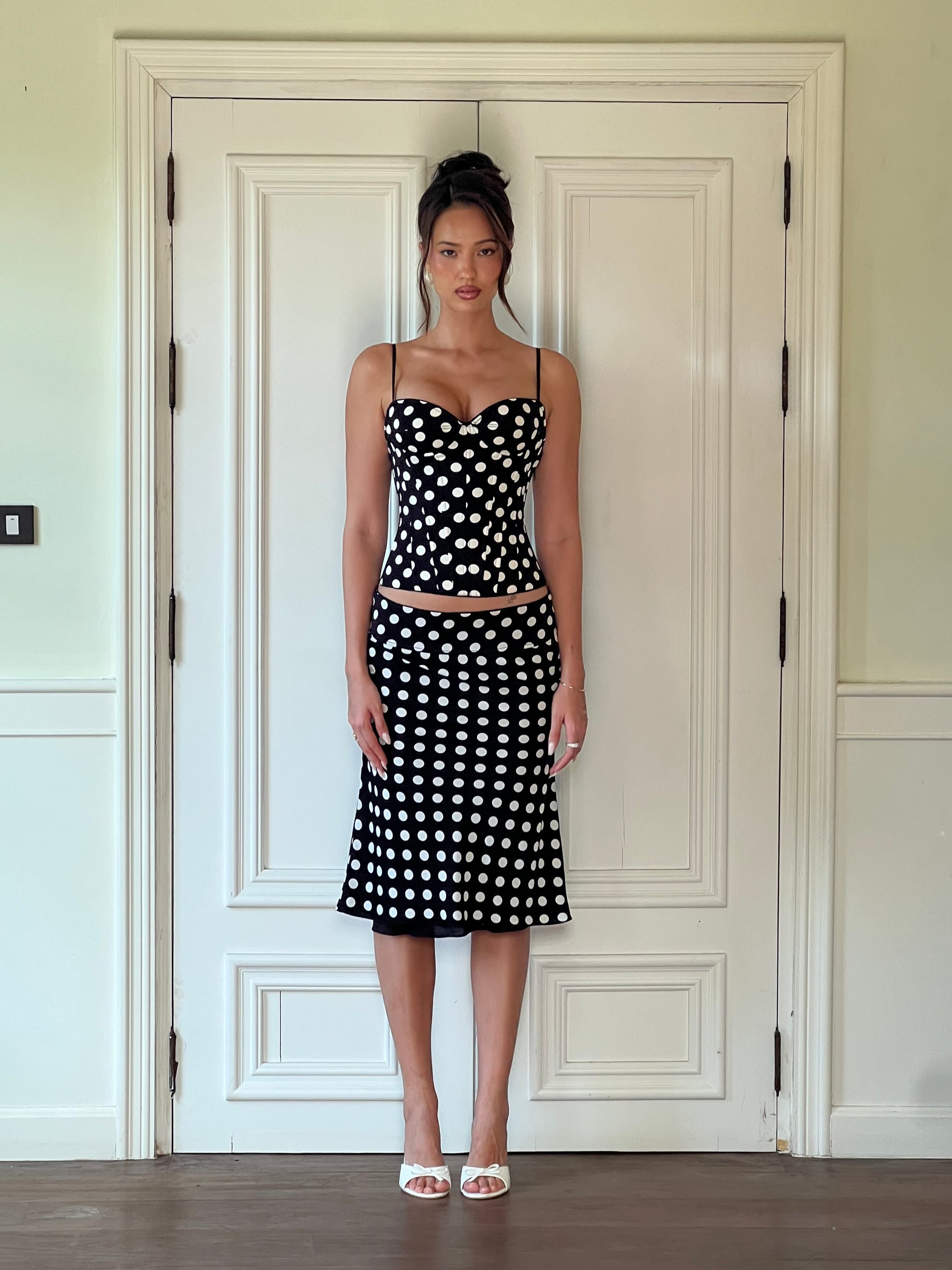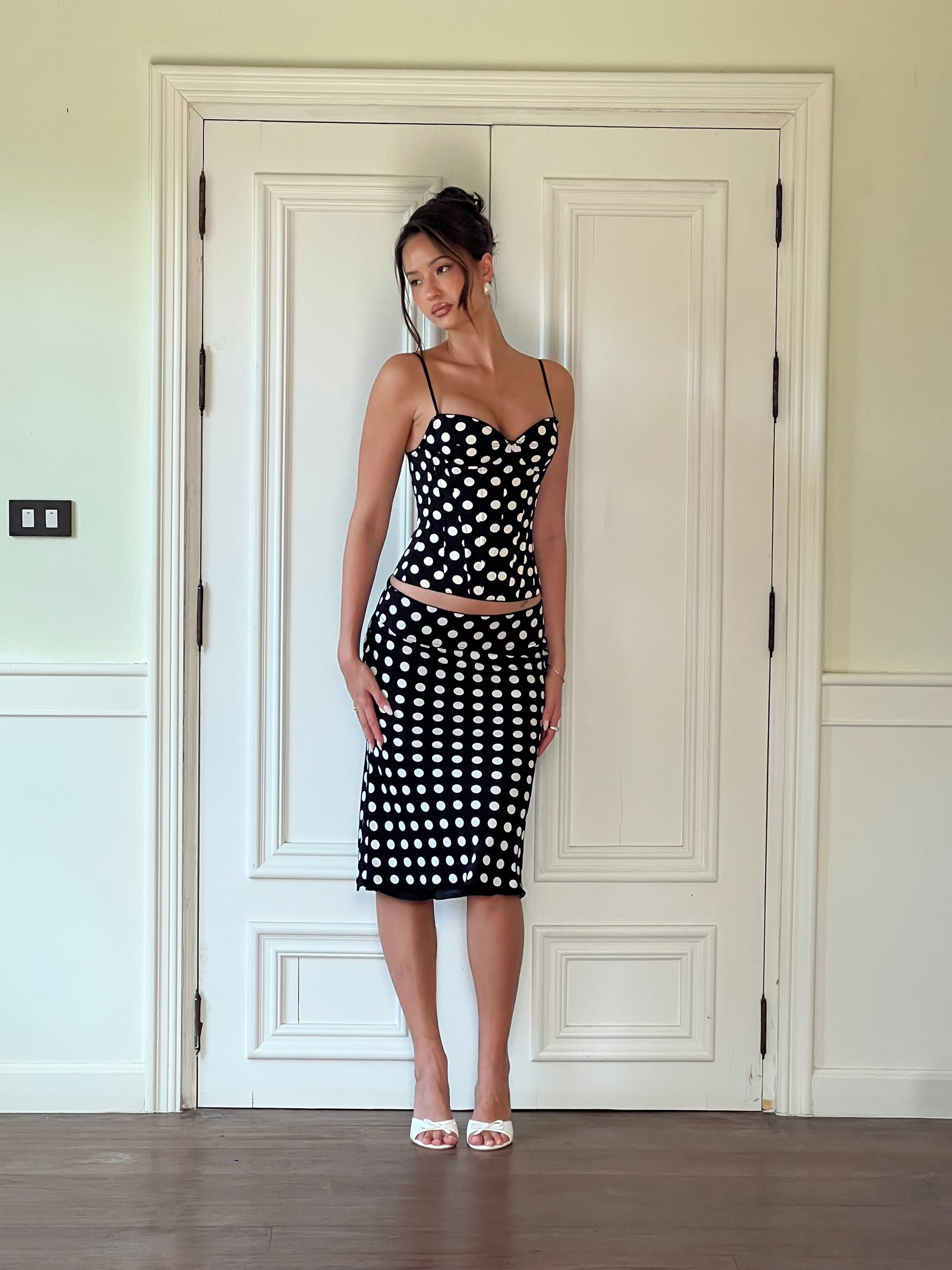 Classic black with white polka dots adds a timeless charm. Wear the set together or style each piece separately.